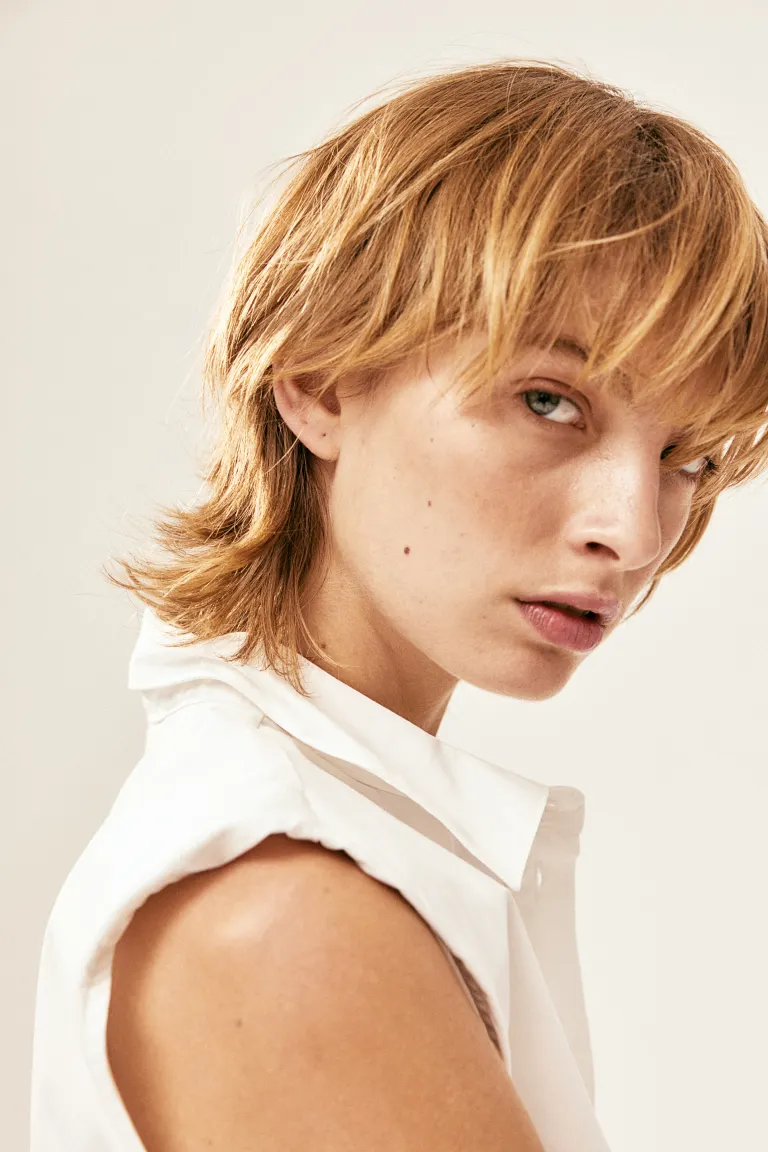 Бренд: H&M Цвет: бежевый Короткое платье без рукавов с расклешенной плиссированной юбкой из воздушной хлопковой ткани. С воротником, подплечниками, планкой на пуговицах и узкой кулиской на талии. Без подкладки. Размер модели: рост модели 178 см/5 футов 10 дюймов, размер S. Размер: плечо: ширина: 41,0 см (размер М), спина: длина: 83,5 см (размер М). Длина: Короткая Длина рукава: Без рукавов Посадка: Приталенная Воротник: Отложной Стиль: Расклешенное платье-блузка Концепция: РАЗДЕЛЕННАЯ