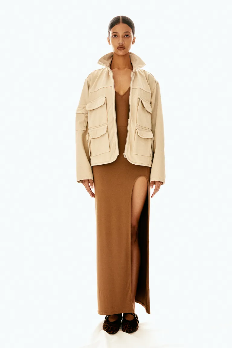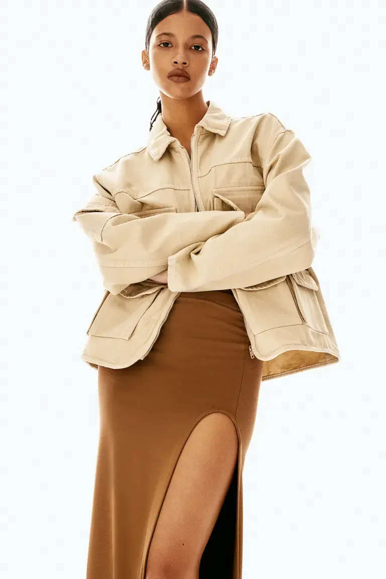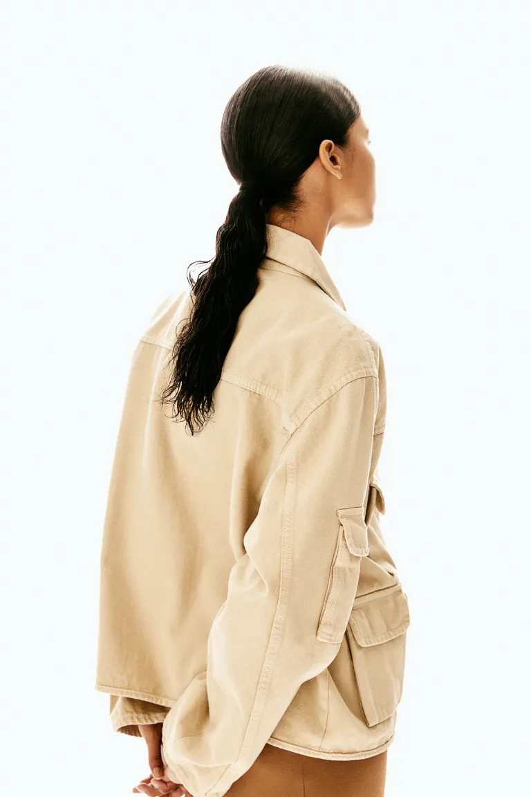 Бренд: H&M Цвет: бежевый Практичная куртка из прочного хлопкового денима с воротником, молнией спереди и кокеткой сзади. Свободный крой, заниженная линия плеча и карман-книжка с клапаном на одном рукаве. Карманы-книжки в области груди и двойные карманы-книжки спереди, каждый с клапаном и застежкой-липучкой. Размер: Рукав: Длина: 61,5 см (Размер М), Плечо: Ширина: 48,5 см (Размер М), Спина: Длина: 62,0 см (размер M) Длина: Стандартная длина Длина рукава: Длинный рукав Посадка: Свободный крой Воротник: Отложной Фильм: Карго Концепция: РАЗДЕЛЕННЫЙ
