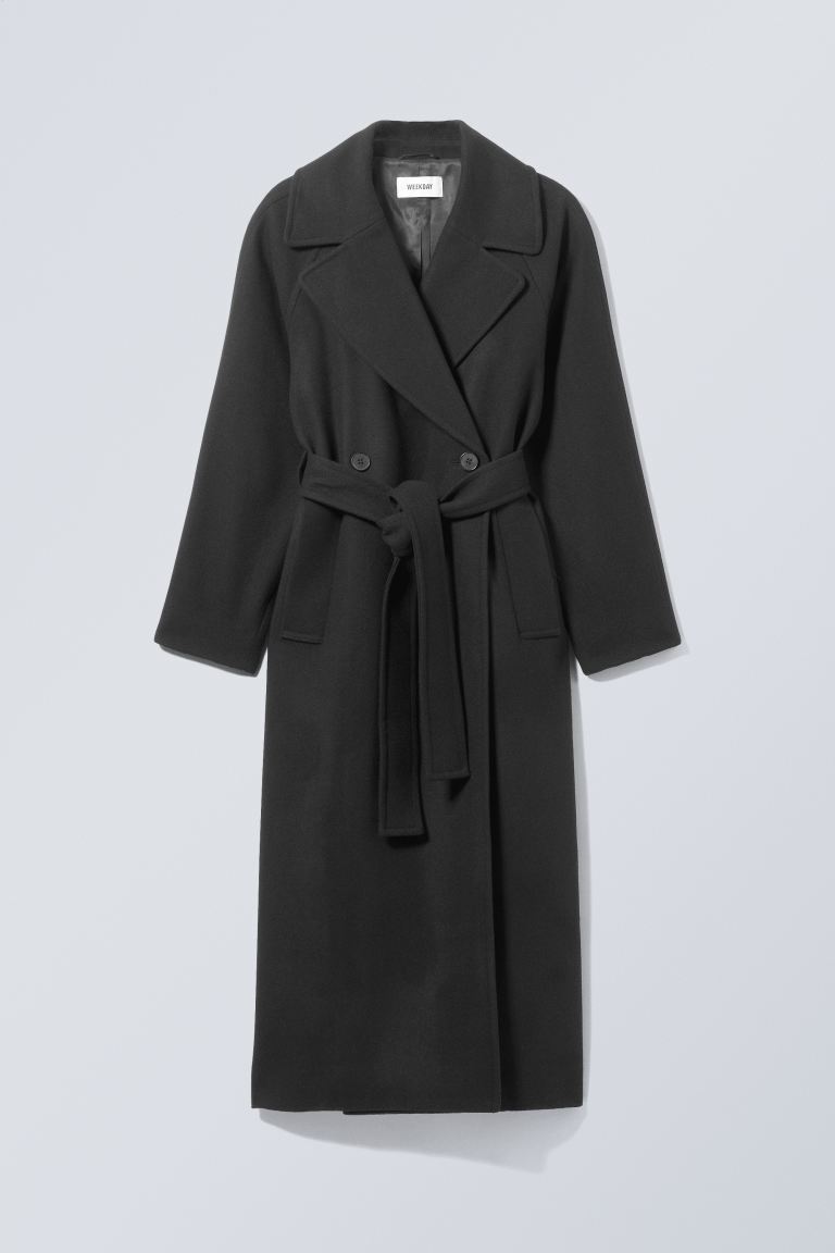 Бренд: Weekday Цвет: черный Это объемное двубортное пальто из валяной шерсти идеально подходит для холодных месяцев. Обязательная вещь: подкладка из мягкого хлопкового батиста, широкие лацканы, две пуговицы спереди и ремень для непринужденного структурированного образа. На модели размер S, ширина груди 110 см, длина 125,5 см и длина рукава 74 см. Размер модели: рост модели 170 см/5 футов 7 дюймов, размер S. Длина: Длинная Длина рукава: длинный рукав Посадка: оверсайз
