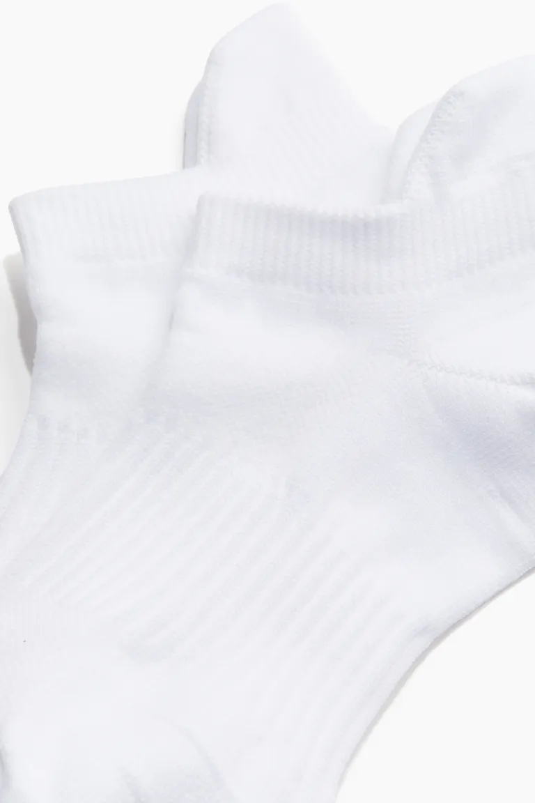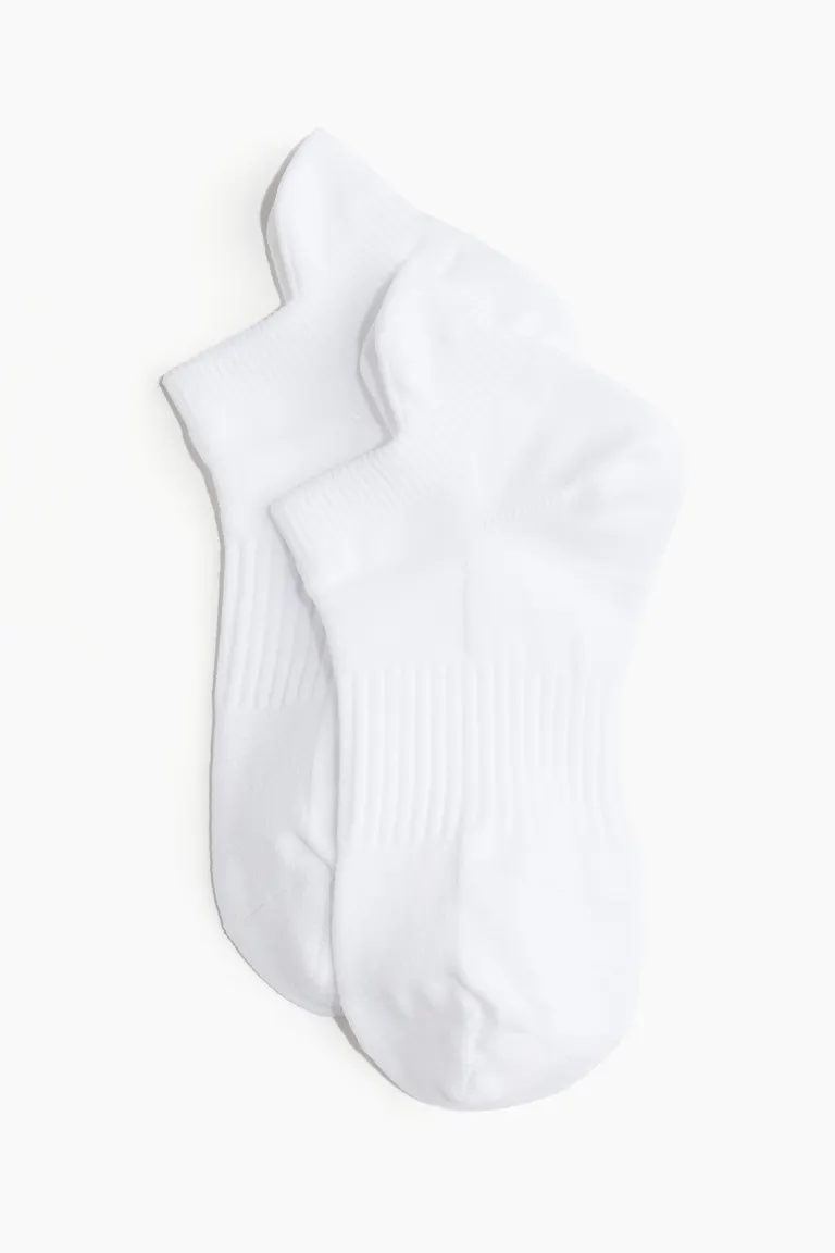 Бренд: H&M Цвет: белый Короткие носки тонкой вязки из функционального материала DryMove, который отводит влагу от кожи, поэтому вы остаетесь сухими во время движения. С сетчатыми вставками для вентиляции, плюсневой поддержкой и усилением в области пятки и пальцев. Эластичные манжеты и удлиненная голенище в пятке для оптимального комфорта. Количеств/пар: 3 Фильм: Короткие носки Функции: Впитывает влагу, быстро сохнет Спорт: Фитнес Концепция: H&M Move Что нужно знать: усиленные детали