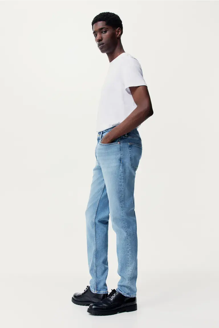 Бренд: H&M Цвет: синий Джинсы с 5 карманами из хлопкового денима с небольшой эластичностью для высокого уровня комфорта. Прямые штанины и облегающий крой от бедра до низа штанины. Талия стандартной высоты и ширинка на молнии. Элегантный или спортивный стиль решает ваш стиль. Размер модели: рост модели 186 см/6 футов 1 дюйм, размер 31/32. Длина: длинная Высота талии: нормальная высота талии Посадка: облегающая Фильм: прямые Концепция: ДЕНИМ