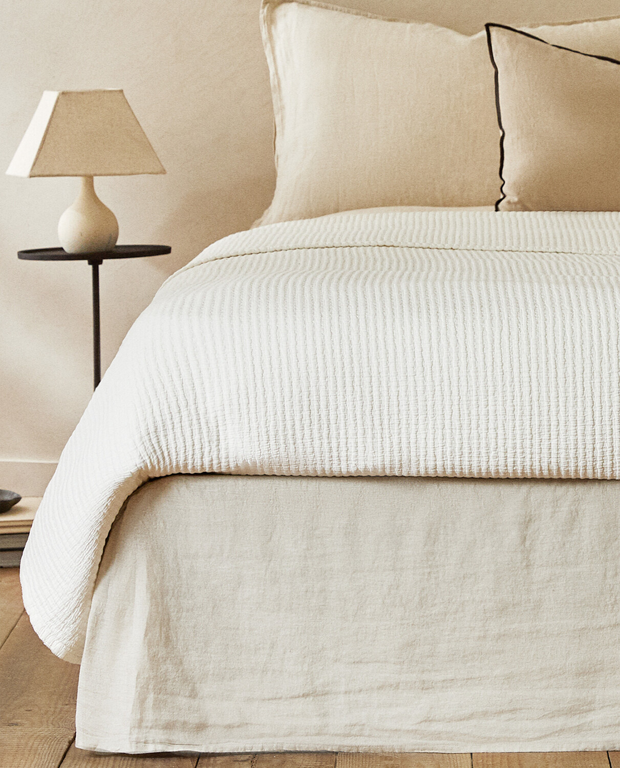 Эта простыня valence, также известная как покрывало для основания кровати, изготовлена из хлопка и льна, имеет два отверстия по углам и эластичные края, обеспечивающие ее аккуратное прилегание к матрасу. Подходит для кроватей с изголовьем, так как оно закрывает остальные 3 стороны кровати.