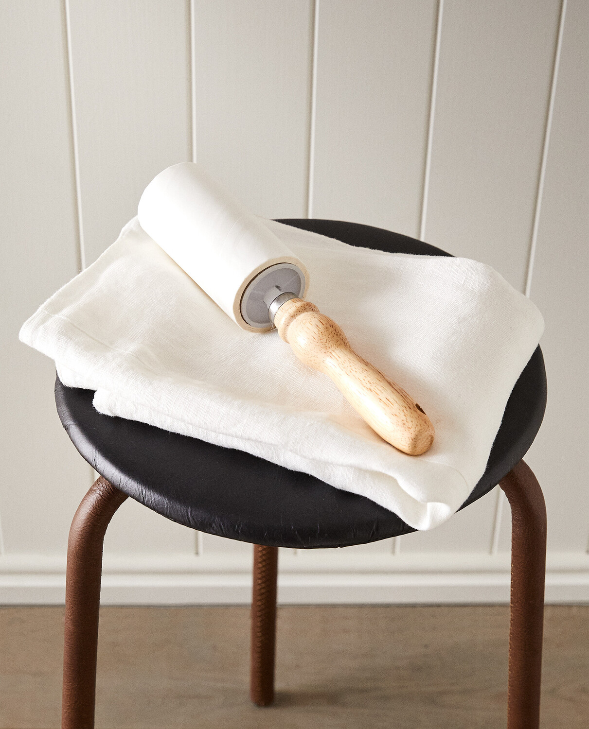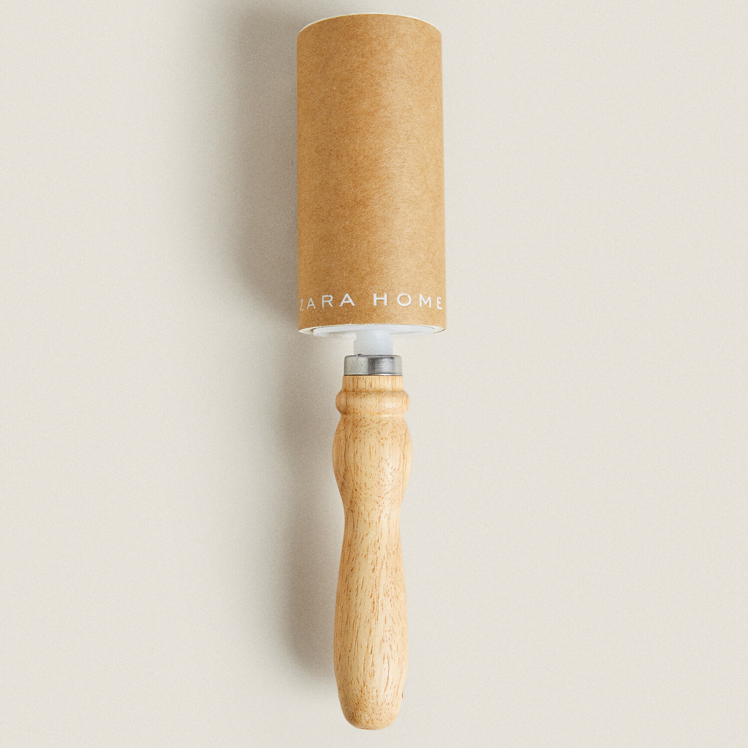 Валик с клейкой лентой для удаления ворса и ручкой из дубового дерева.