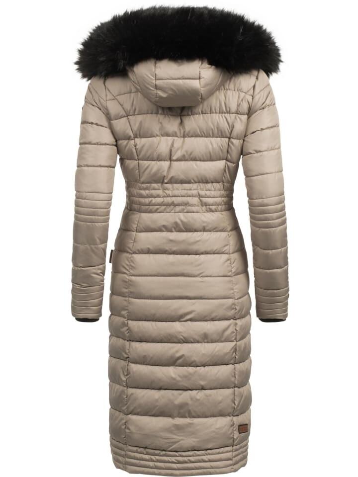 ВИД: Стильное женское зимнее пальто с модной стежкой и контрастным искусственным мехом на капюшоне (съемном). МАТЕРИАЛ: Длинное пальто для отдыха на открытом воздухе из элегантного матового мерцающего внешнего материала с разнообразной стежкой, мягкая внутренняя подкладка и толстая набивка прекрасно сохраняют тепло. для холодных дней