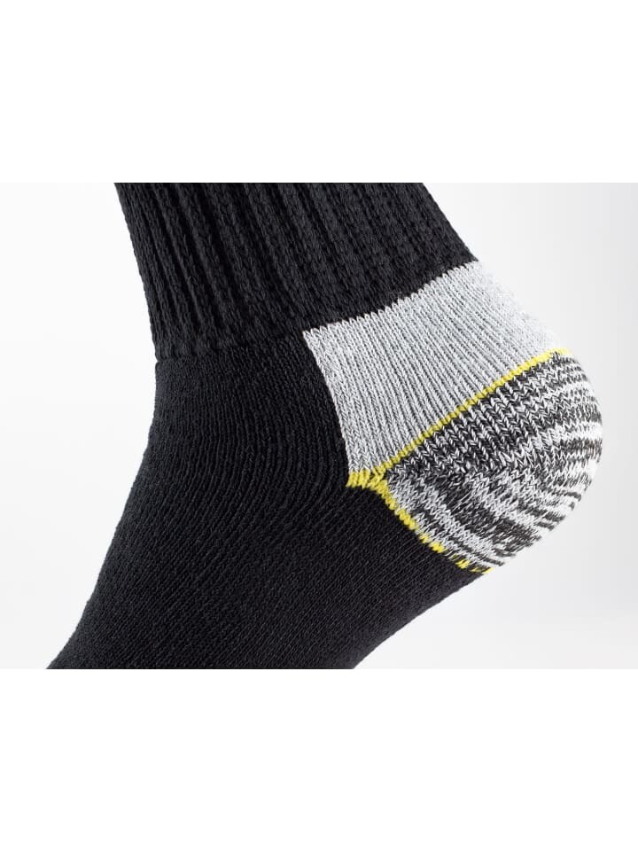 Для всех мужчин и их ног, испытывающих большую нагрузку: теперь долгие рабочие дни можно легко пережить с помощью рабочих носков. Адаптируемый и приятный для кожи состав материала, а также очень мягкий, приятный для вен комфортный пояс обеспечивают оптимальный комфорт при ношении. Очень широкое ребро на валу. Усиленные зоны напряжения в области носка и пятки оптимально амортизируют ногу в рабочей обуви. Прочные мужские носки с защитной подкладкой можно носить с рабочей обувью, особенно с обувью со стальным носком, и они станут идеальным дополнением к вашей рабочей одежде. Мягкий материал наших рабочих носков согреет ваши ноги зимой и обеспечит оптимальную терморегуляцию летом. С нашими рабочими носками вы получаете универсальные вещи на любой сезон и для разных рабочих зон. Материал: 65 % хлопок, 35 % полиэстер