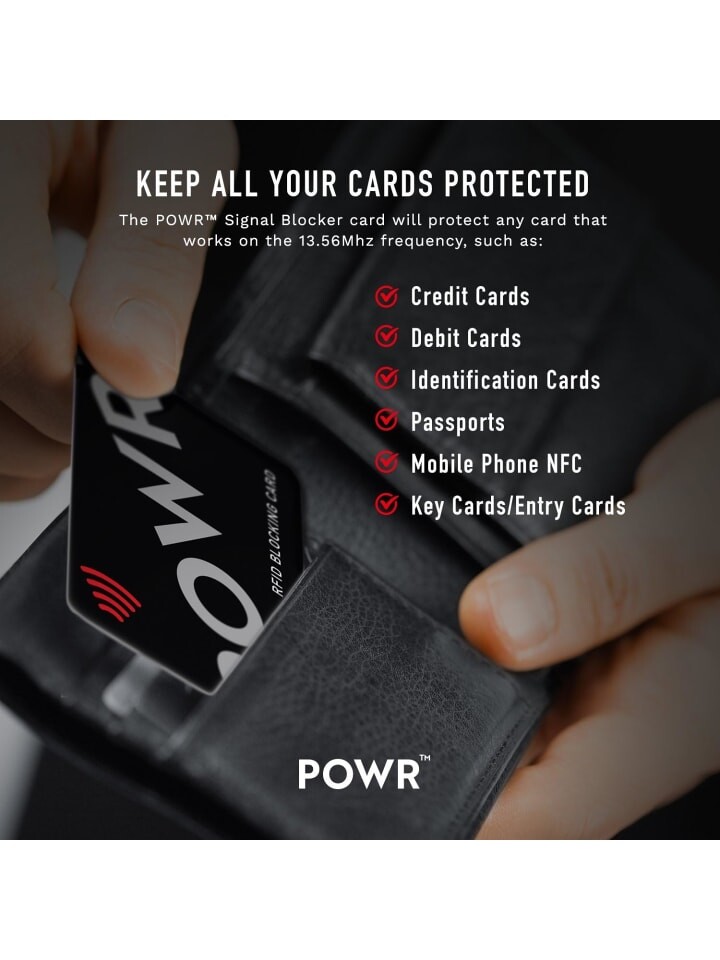 Карты блокировки сигнала POWR RFID — лучший способ защитить все ваши бесконтактные платежные карты от несанкционированного использования.