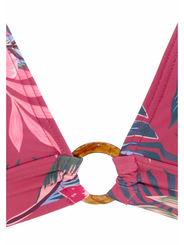 Модный треугольный топ от s.Oliver. С тропическим принтом. Удобство: завязывается на шее и застегивается сзади. Съемные мягкие чашки для красивого декольте. Привлекает внимание: маленькое декоративное кольцо спереди. Мягкая микрофибра.