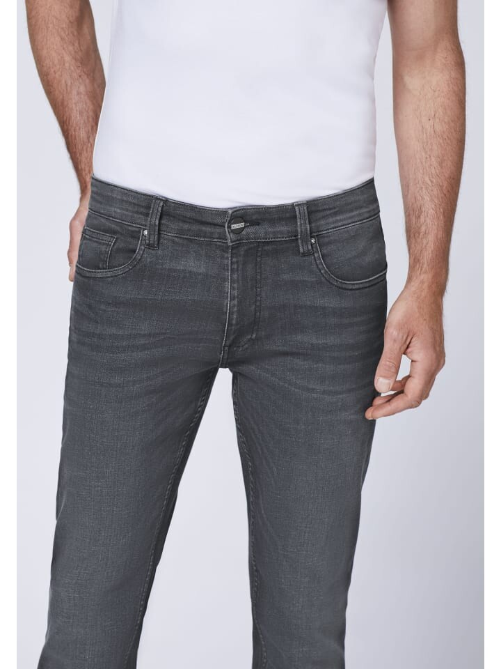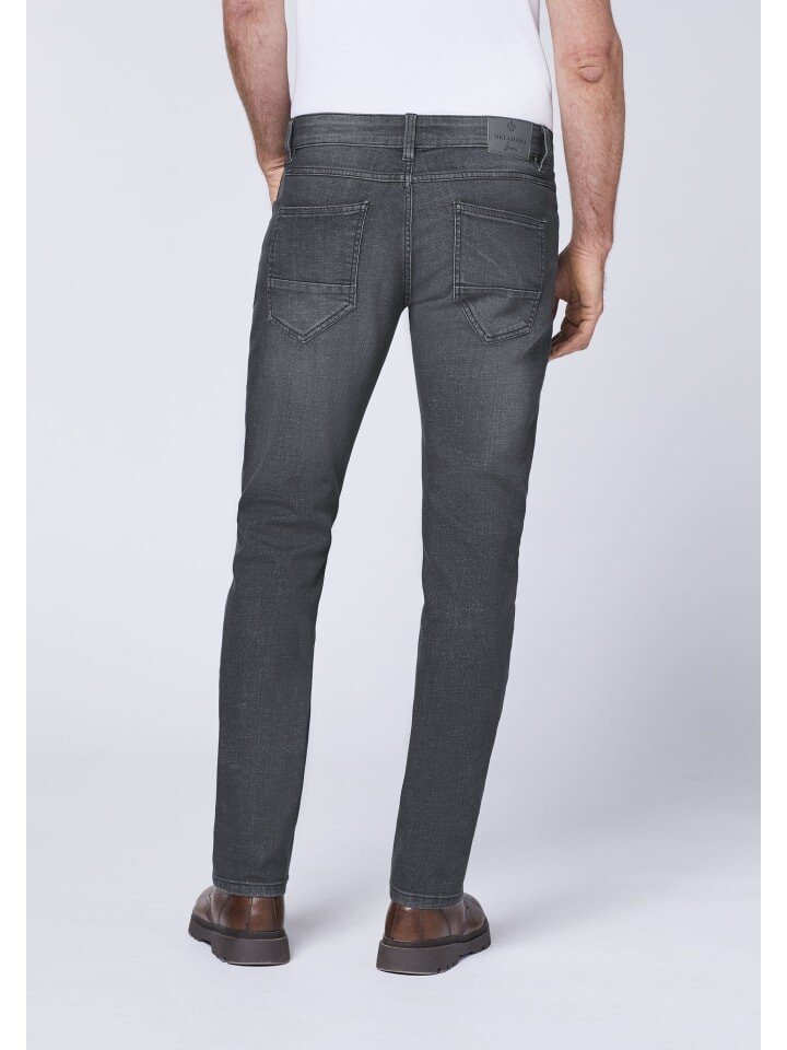 Классные базовые джинсы из Оклахомы на каждый день! Наши зауженные джинсы с пятью карманами станут незаменимым спутником любого непринужденного образа. Содержание эластана обеспечивает максимальный комфорт при ношении. Модная расцветка с эффектами поношенности придает джинсам особенно модный акцент и делает их идеальными для любого повседневного наряда. Сочетайте джинсы OKLAHOMA с футболкой базового стиля, и вы готовы ко всем видам досуга!