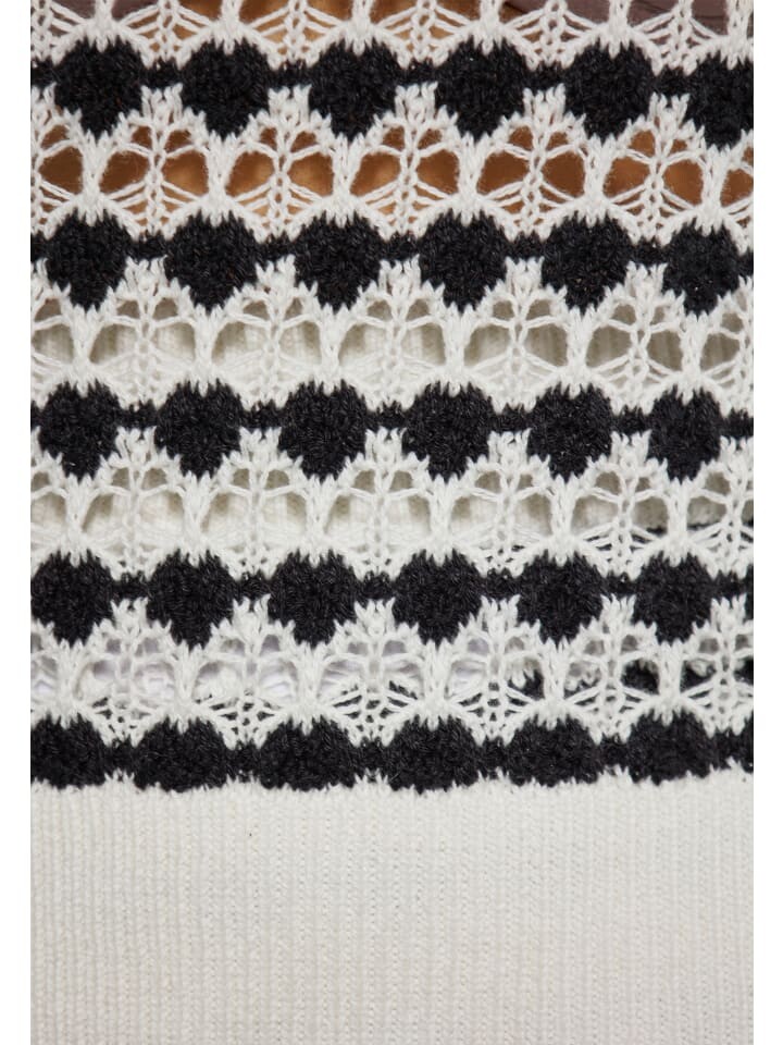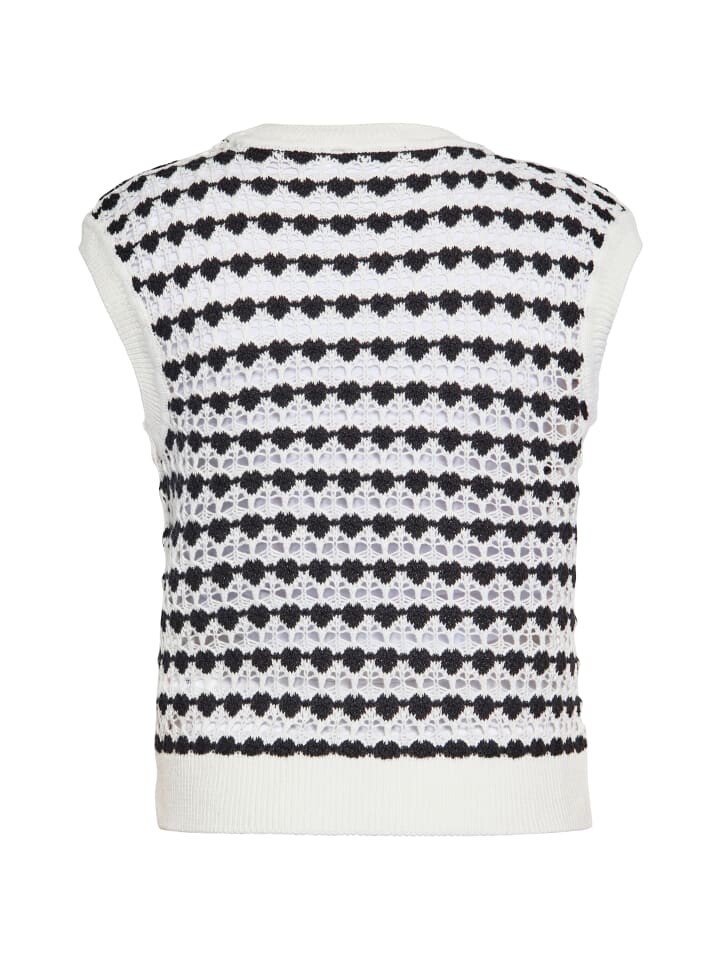 Подчеркните свой стиль с помощью этого трикотажного топа без рукавов с очаровательным узором. Ребристый круглый вырез и подол придают нотку изысканности, а замысловатый мотив по всей поверхности создает уникальный эффект горизонтальных полос. Благодаря ребристым краям в проймах для удобной и надежной посадки этот топ идеально подходит для придания шика любому наряду.