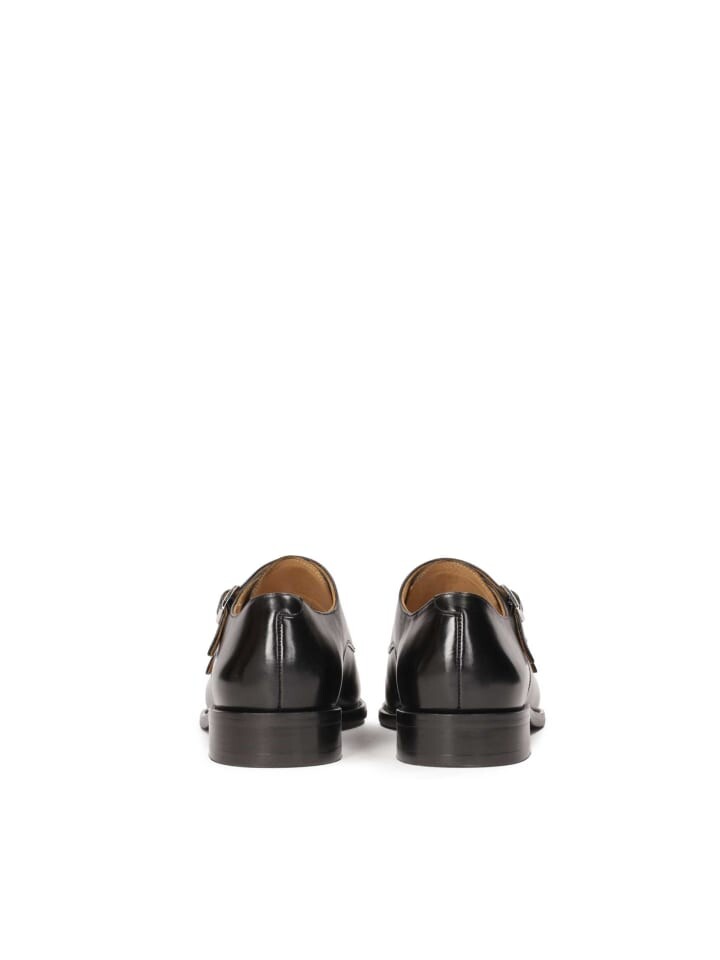Элегантные и неподвластные времени туфли в стиле монки характеризуются изящным язычком с металлическими пряжками, эффектно украшающими переднюю часть голенища. Полуботинки полностью изготовлены из высококачественной лицевой кожи, поэтому они не только идеально выглядят снаружи, но и очень удобны в использовании. Классический черный цвет обуви — универсальный выбор как для костюма, так и для менее формального стиля, например, в сочетании с джинсами.