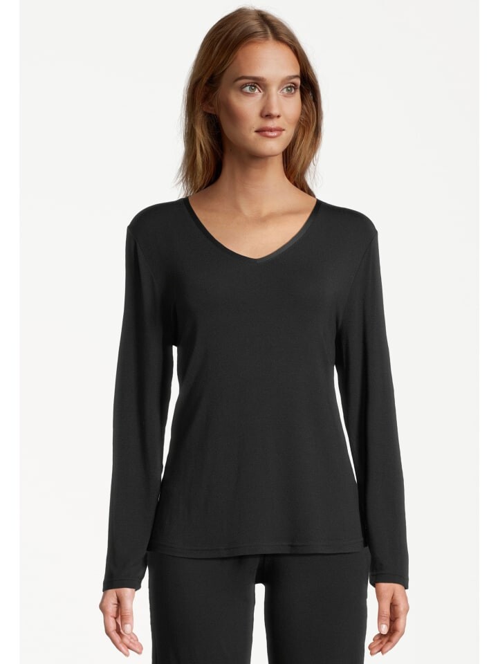 Эта рубашка с длинными рукавами из красивого блестящего мягкого материала обеспечивает максимальный комфорт. Изготовленный из экологически чистых волокон древесины бука, он регулирует температуру и впитывает влагу. Идеально подходит для хорошего самочувствия и может сочетаться различными способами с серией модной домашней одежды для идеального сочетания и сочетания.
