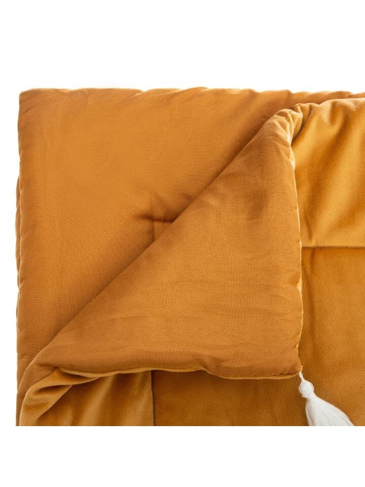 Точно сшитое из тончайшего полиэстера, покрывало является идеальной защитой от грязи на постельном белье и в то же время время приятный аксессуар . Глубокий цвет и интересная текстура будут отлично смотреться на вашей кровати. Интенсивный желтый цвет и элегантные кисточки на кончиках придадут вашей спальне сказочный вид. Приятная текстура велюрового одеяла и его мягкость позволяют прекрасно расслабиться.