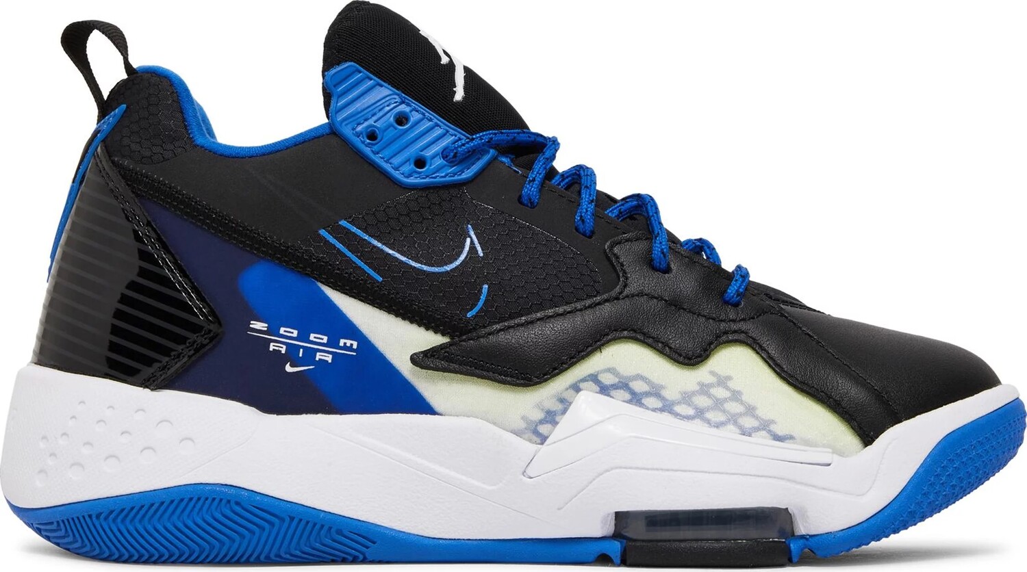 Новая модель Jordan Zoom 92 получила классическую, узнаваемую расцветку «Royal», которую мы могли видеть в ретро-моделях Jordan, включая AJ1. Сникеры предлагают верх из комбинации сетки и кожи с эластичными деталями, а также комфортной посадкой. Сбоку видим брендинг технологии амортизации Zoom Air, а сзади — баджи в стиле Jordan 7.