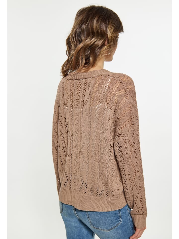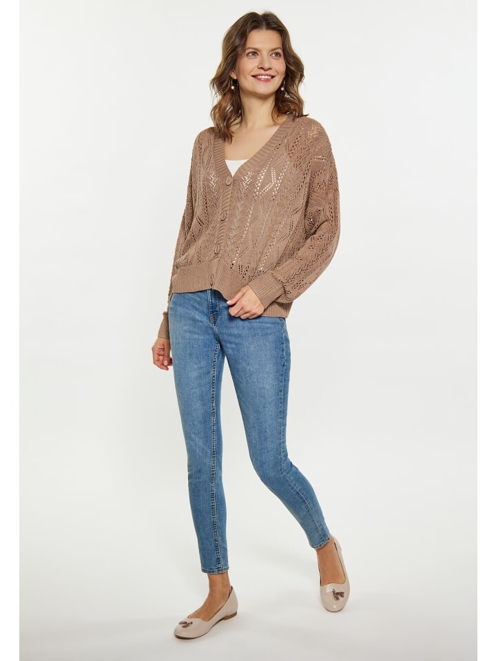 Представляем наш потрясающий вязаный кардиган открытой структуры, который идеально добавит элегантности вашему гардеробу. Этот кардиган с V-образным вырезом и планкой на пуговицах специально создан с учетом потребностей женщин. Нежный кружевной узор создает красивый декоративный вид по всему телу и рукавам, а ребристые манжеты и подол обеспечивают удобную посадку.