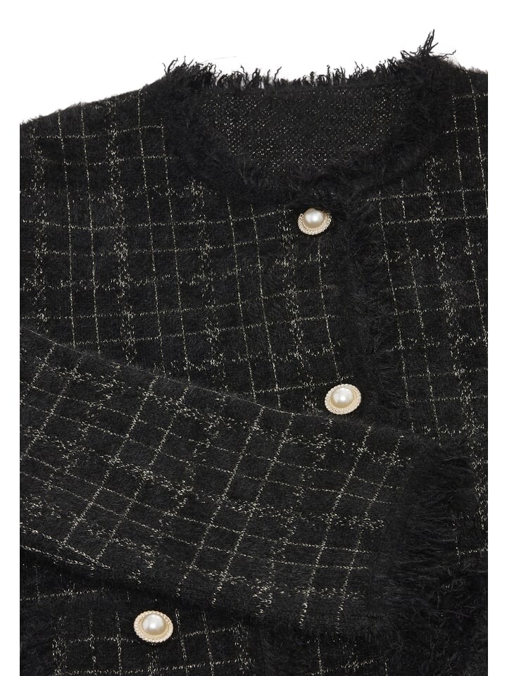 - Узор в клетку добавляет глубины, а бахрома на манжетах, подоле и карманах добавляет элегантности.