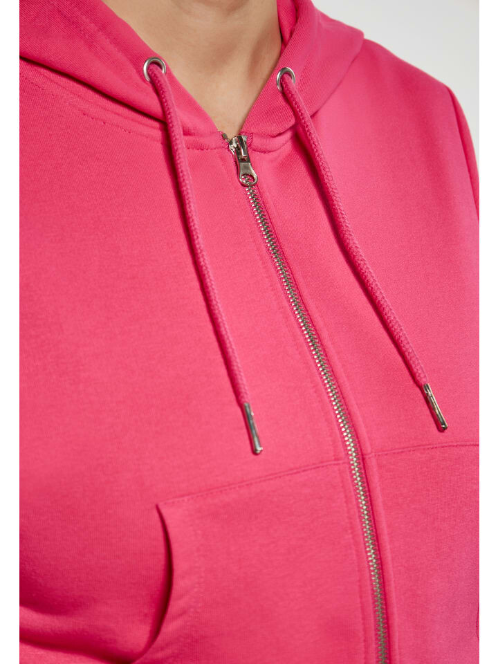 Укороченная толстовка с капюшоном на молнии и шнурком для индивидуальной посадки. Длинные рукава с ребристыми манжетами и подолом. Карманы-кенгуру на уровне бедер. Трикотажная текстура для повседневной или спортивной одежды.