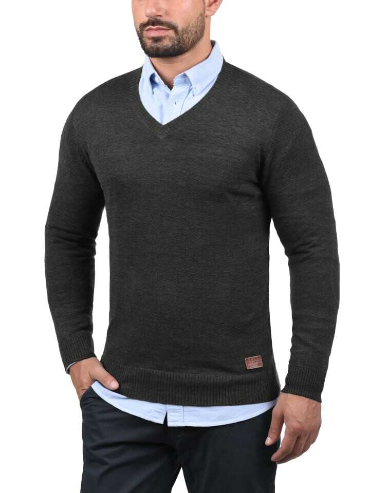 ДЕТАЛИ И ОСОБЕННОСТИ: Слегка эластичный тонкий трикотаж, ребристый V-образный вырез, меланжевый вид, вышитые нашивки на локтях, кожаные нашивки с логотипом спереди и сзади на манжетах, ребристые манжеты и манжеты. Посадка: стандартная посадка — рост нашей модели 1,82 м. и носит размер М. Вы обычно носите размер М? Тогда этот вариант от нас идеален для вас!