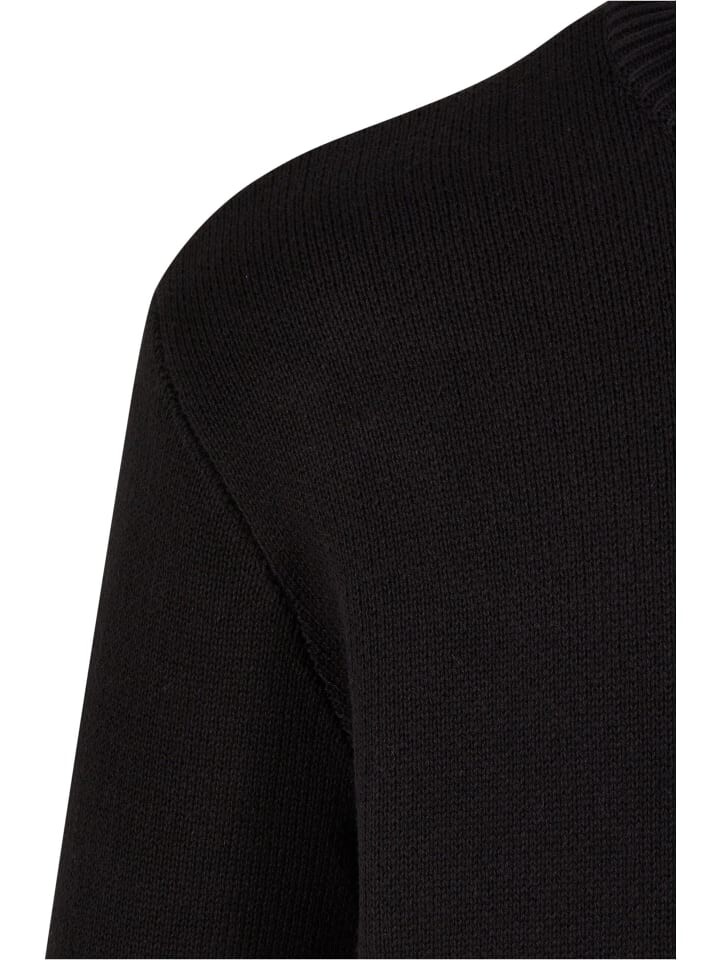 Мужской вязаный свитер впечатляет своим повседневным кроем оверсайз и слегка завышенными плечами, а также своим вязаным видом. Круглый вырез горловины, манжеты и подол украшены манжетами в рубчик. Мужской свитер изготовлен из приятного для кожи хлопка, обработанного как плотный трикотаж.