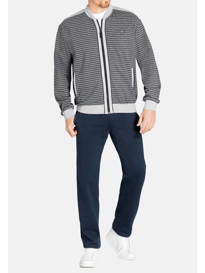 Спортивный домашний костюм из серии Klima Komfort. Удобный комплект-двойка состоит из длинных брюк с двумя боковыми карманами и верха в форме куртки на молнии и эластичных манжетах.