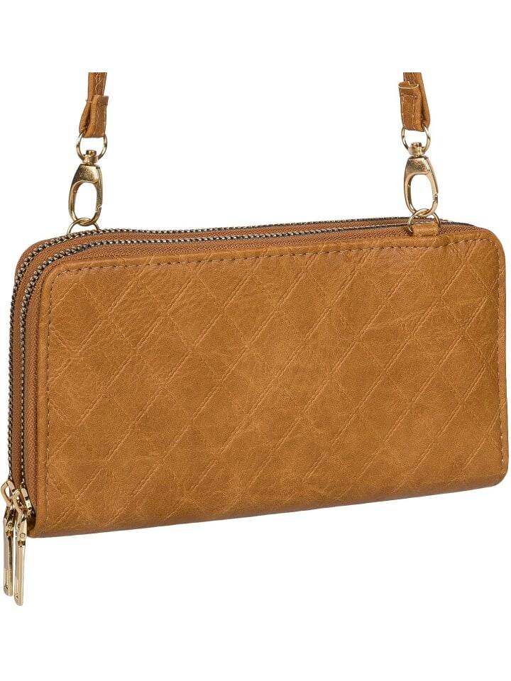 styleBREAKER элегантная мини-сумка/кошелек через плечо 2 в 1 с 2 отделениями на молнии и одноцветной тисненой поверхностью в форме ромба.