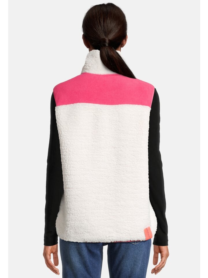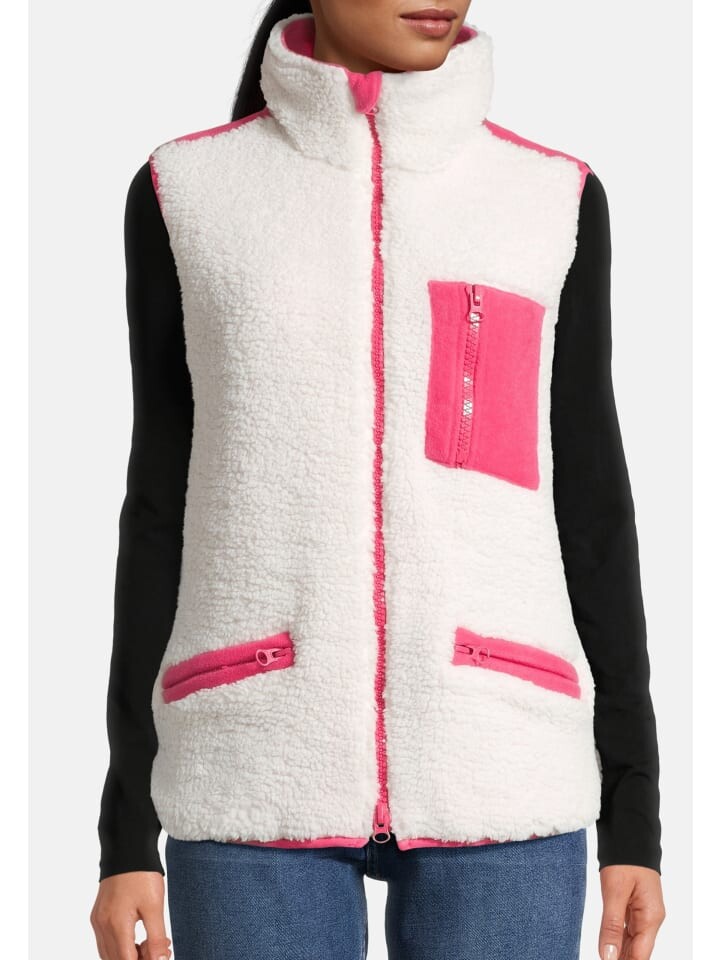 Отличный и уютный плюшевый жилет со множеством деталей. Контраст розового и белого делает этот жилет настоящей приманкой для глаз, а благодаря многочисленным карманам он становится теплым компаньоном для долгих прогулок, в котором ключи и мобильные телефоны можно безопасно и надежно хранить благодаря застежкам-молниям. На нашей модели размер S. Обычный крой.