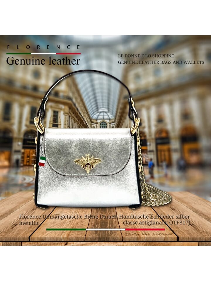 Сумка через плечо из пчелиной кожи женская серебристый металлик Флоренция