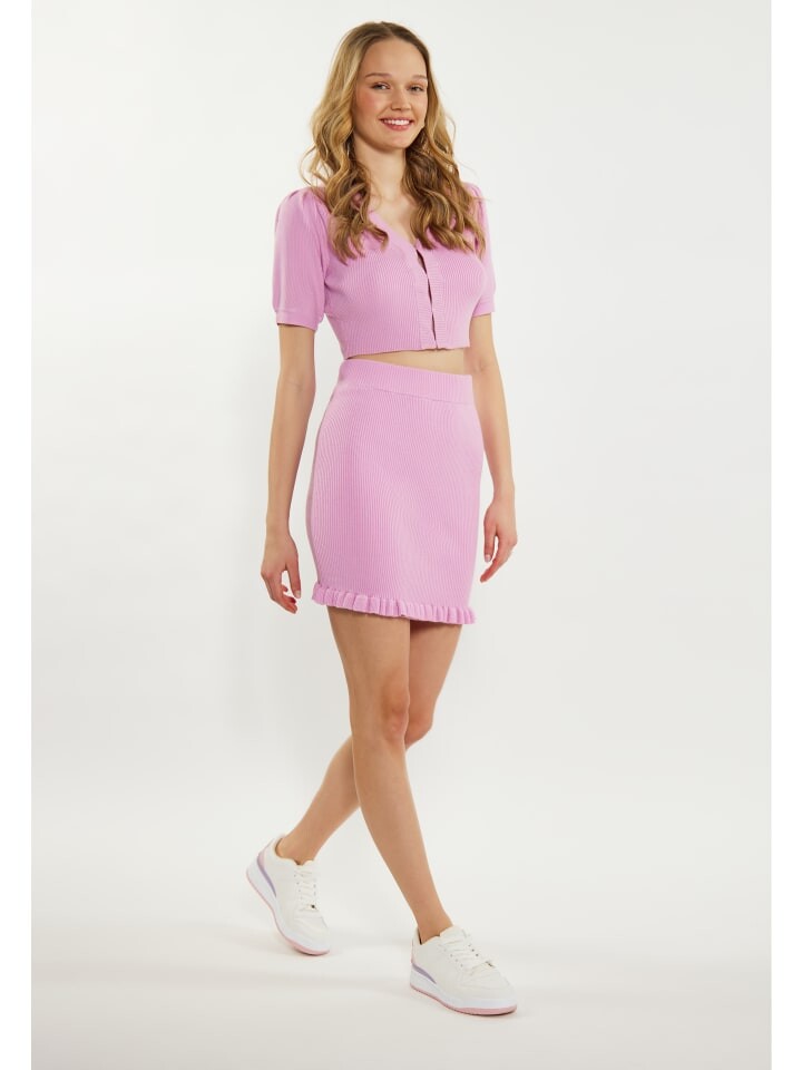 Представляем нашу искусно созданную приталенную трикотажную юбку, предназначенную исключительно для женщин. Эта юбка с высокой талией имеет короткую длину и характерный эластичный пояс для удобной посадки. Ребристый узор придает изделию текстуру и глубину, а присборенный низ придает женственность.