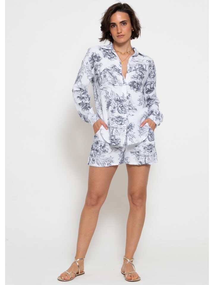 Откройте для себя идеального спутника на лето: наши летние женские шорты из высококачественного хлопка. Структурированная поверхность придает этим муслиновым шортам особый вид, а мягкость обеспечивает оптимальный комфорт. Легкий муслин приятно пропускает воздух и идеально подходит для теплых дней. Красивый принт с надписью придает коротким женским брюкам повседневный вид, а драпированный дизайн придает женственный вид. Эластичный пояс обеспечивает удобную посадку и позволяет легко надевать и снимать. Боковые карманы обеспечивают практичное место для хранения мелких предметов. Эти женские шорты, произведенные в Италии, гарантируют высочайшее качество и первоклассную обработку. Эти летние шорты с рисунком прекрасно сочетаются с муслиновой блузкой от SASSYCLASSY, состоящей из двух частей, и создают модный образ. Эти шорты станут идеальным выбором для спокойного дня на пляже или повседневной прогулки по городу.