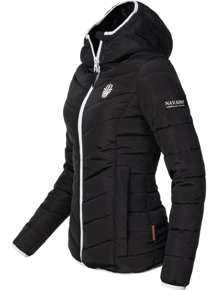 ВИД: Стильная стеганая женская зимняя куртка с белыми деталями и большим капюшоном - идеальна для холодного времени года