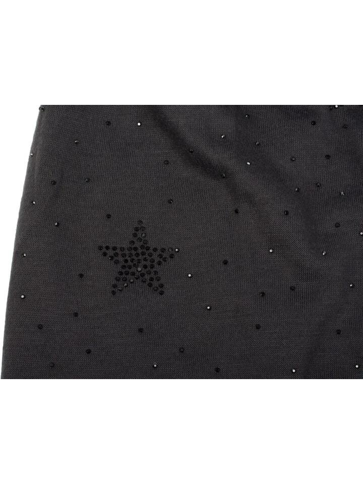 Легкая шапка-бини styleBREAKER со звездами из стразов и драгоценными камнями по всей поверхности.