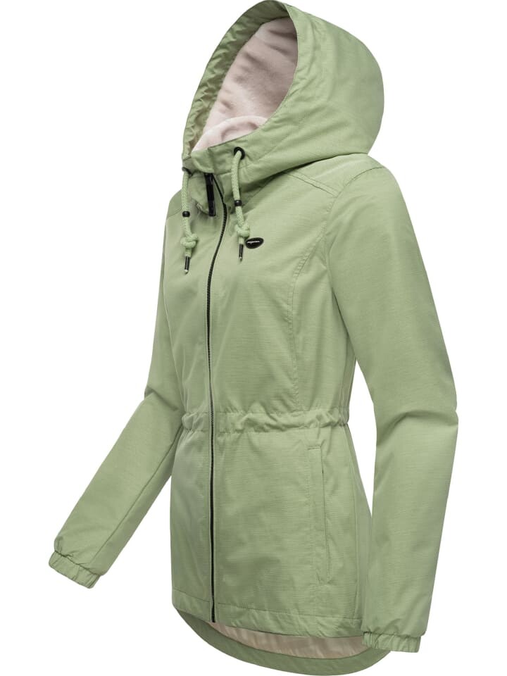 ВИД: Стильная женская верхняя куртка с уютным капюшоном на теплой подкладке и прочным, водонепроницаемым внешним материалом от модного лейбла уличной одежды Ragwear - базовая вещь, без которой не обходится ни один гардероб. МАТЕРИАЛ: Ветрозащитный и водонепроницаемый внешний материал (со столбом воды 11 000 мм), шелковистая гладкая внутренняя подкладка на теле, приятная мягкая флисовая подкладка на капюшоне и малый вес куртки делают куртку для отдыха компактной, что делает ее особенно удобной в ношении
