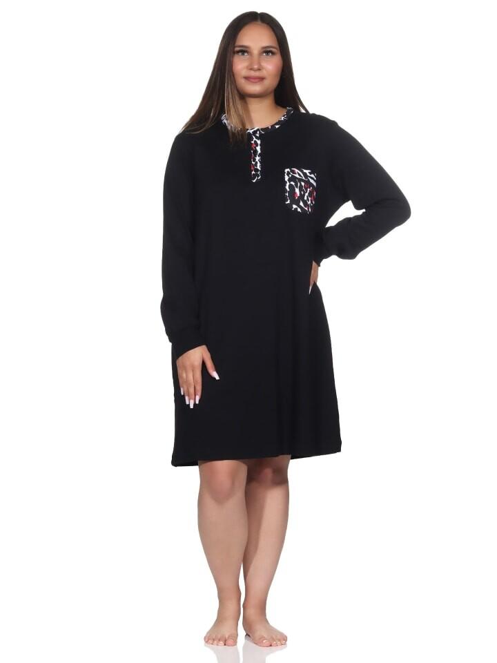 Какая приятная, теплая и красивая женская ночная рубашка с длинными рукавами приятного теплого качества интерлок для всех, кто любит милых животных! Ночная рубашка однотонная, с нагрудным карманом контрастного цвета с животным принтом.