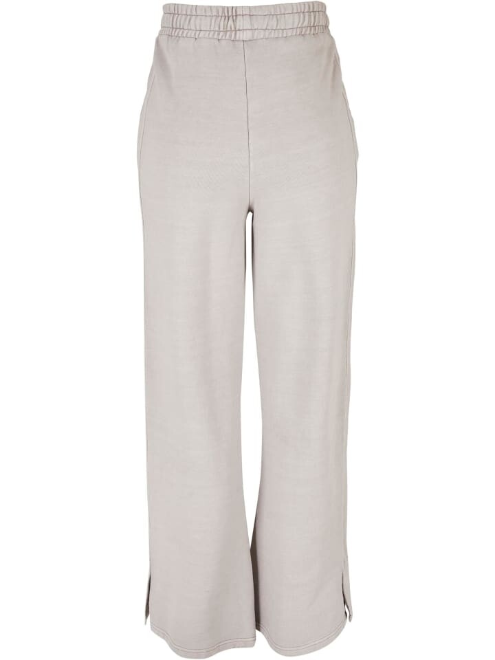 Женские спортивные брюки имеют высокую посадку на талии благодаря эластичному поясу. Два боковых кармана практичны, а широкий свободный крой и мягкий материал из плотной хлопковой махры удобны. Разрезы на концах штанин, вставки на внешней стороне штанин и слегка отбеленная ткань создают желаемый стиль.