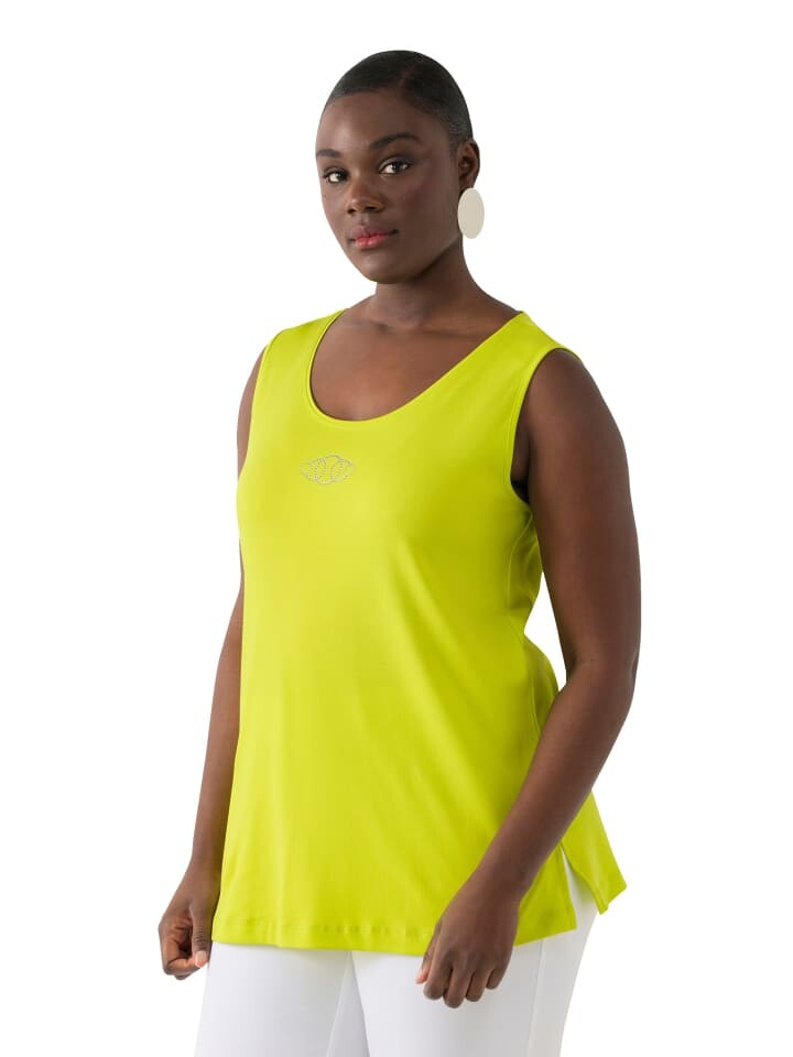 Топ из хлопка пима, облегающий крой без рукавов, с декоративными камнями, изготовлен из лучшего хлопка пима - очень длинного штапельного, очень мягкого и прочного. Круглый вырез горловины с декоративным каменным узором внизу. Внешний материал: 100 % хлопок.