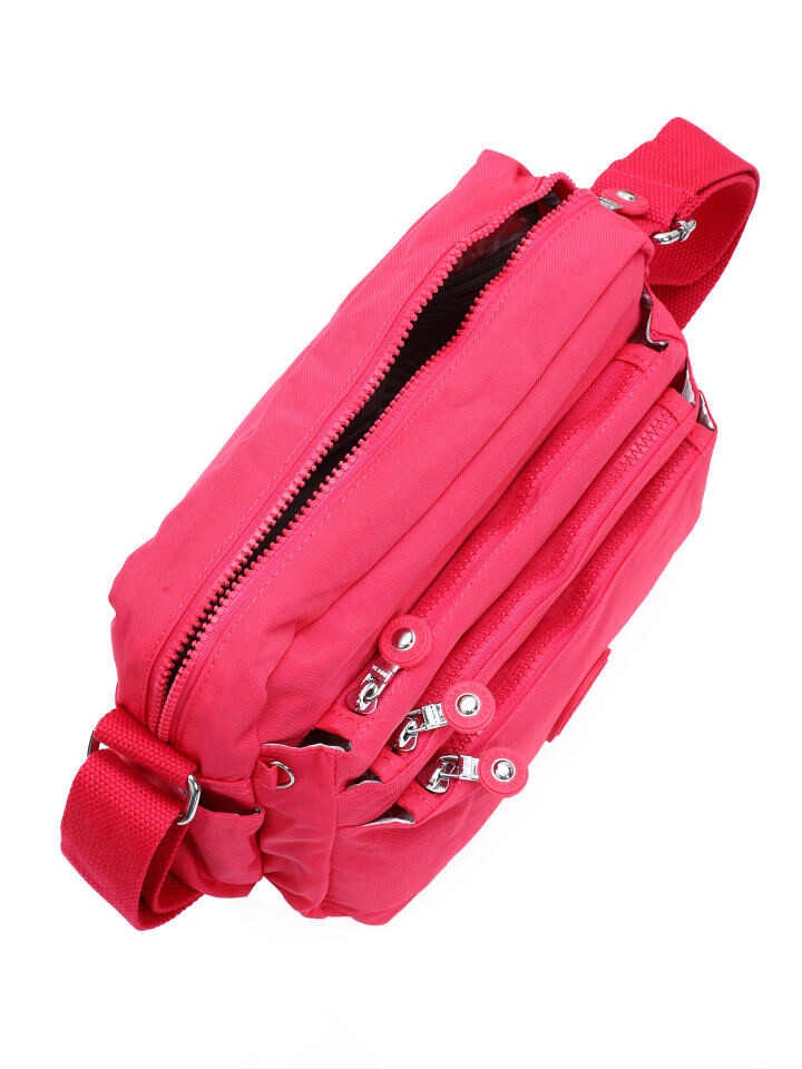 Эта универсальная и функциональная сумка через плечо имеет текстильную поверхность и регулируемый ремень для удобного ношения. Благодаря множеству отделений на молнии для эффективной организации он предлагает множество вариантов хранения. На передней части имеется тисненая эмблема или логотип, добавляющий индивидуальности бренда повседневному и практичному дизайну, идеально подходящему для повседневного использования.