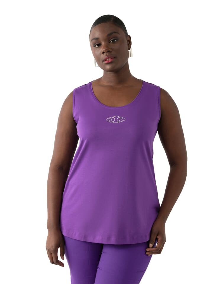 Топ из хлопка пима, облегающий крой без рукавов, с декоративными камнями, изготовлен из лучшего хлопка пима - очень длинного штапельного, очень мягкого и прочного. Круглый вырез горловины с декоративным каменным узором внизу. Внешний материал: 100 % хлопок.