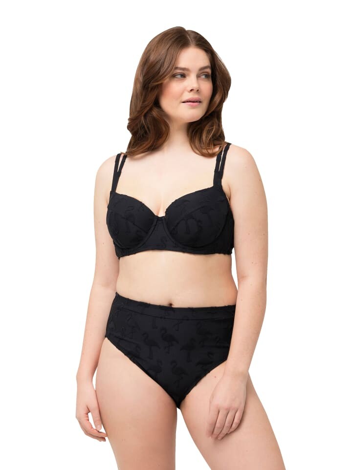 Бикини, состоящее из двух частей, с мягкими чашками и узором в виде фламинго, из мягкой махровой ткани. Топ на косточках, чашка D, регулируемые двойные бретели. Соответствующие трусы с завышенной талией. OEKO-TEX.