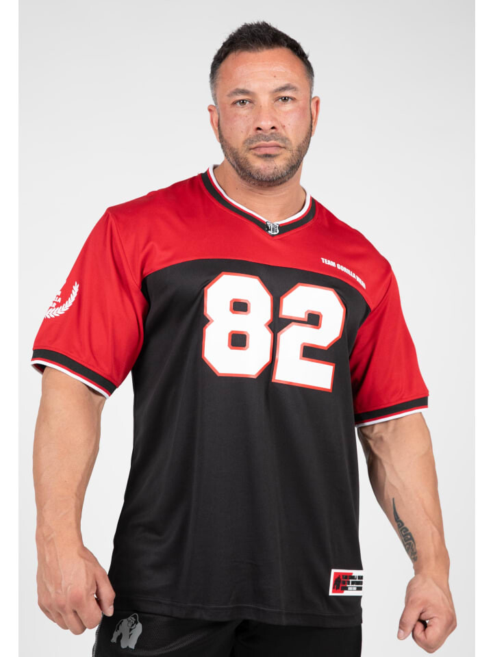 Воспринимайте наследие легкой атлетики с футбольной майкой Trenton. Этот топ с классическим V-образным вырезом и широким рукавом до локтя не только излучает стиль, но и обеспечивает непревзойденный комфорт. Изготовленная из дышащей полиэфирной сетки, она обеспечивает прохладу и сухость во время занятий в тренажерном зале. Привлекательное зрелище: футболка Trenton Football украшена множеством эмблем и принтов, в том числе культовым стилем «Team Gorilla Wear» и большим принтом 82, отсылающим к году основания нашего легендарного бренда.
