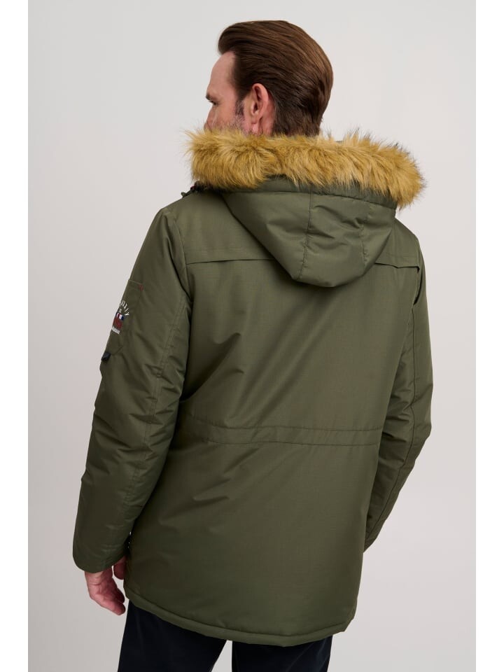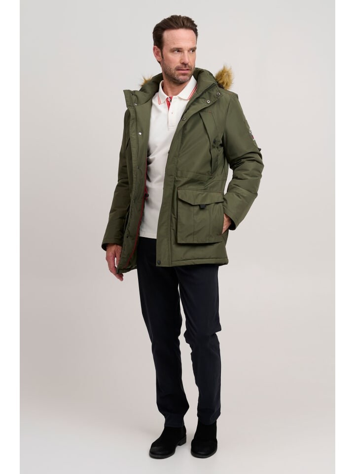 ДЕТАЛИ И ОСОБЕННОСТИ: Парка, теплая подкладка, высокий съемный капюшон с искусственным мехом, застежка на молнию и кнопки, два нагрудных кармана, два боковых кармана с дополнительными боковыми отверстиями, внутренняя кулиска, контрастная подкладка в области тела, небольшой карман. с вышивкой логотипа на левом плече, эластичными ребристыми манжетами на рукавах, прочным и высококачественным материалом с ребристым краем