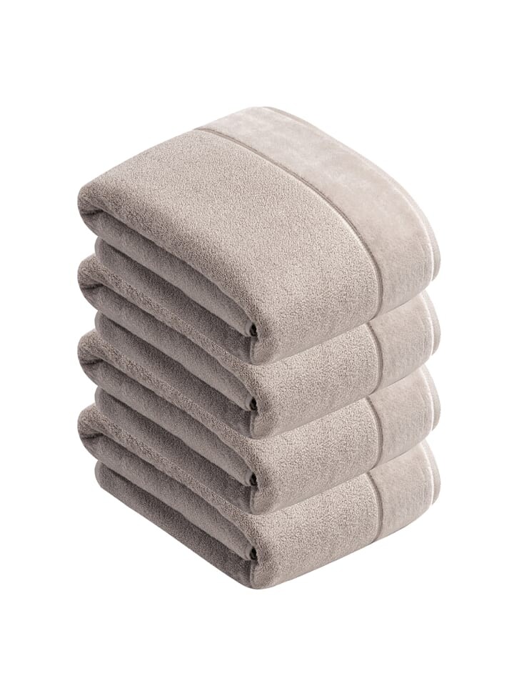 В упаковке 4 банных полотенца размером 100 х 150 см марки Vossen из серии Pure. Особенностью изделия является хлопок, веганский, мягкий, элегантный велюровый край, очень впитывающий и приятный на ощупь, пушистый. Откройте для себя уникальную мягкость и нежность полотенец VOSSEN. Наслаждайтесь приятными ощущениями при высыхании и в то же время поддерживайте экологичность и бережное отношение к коже с полотенцами VOSSEN.