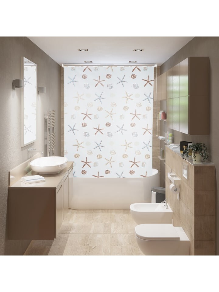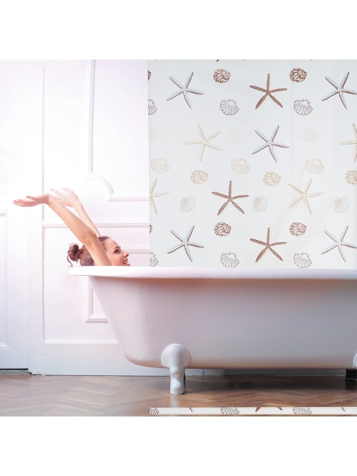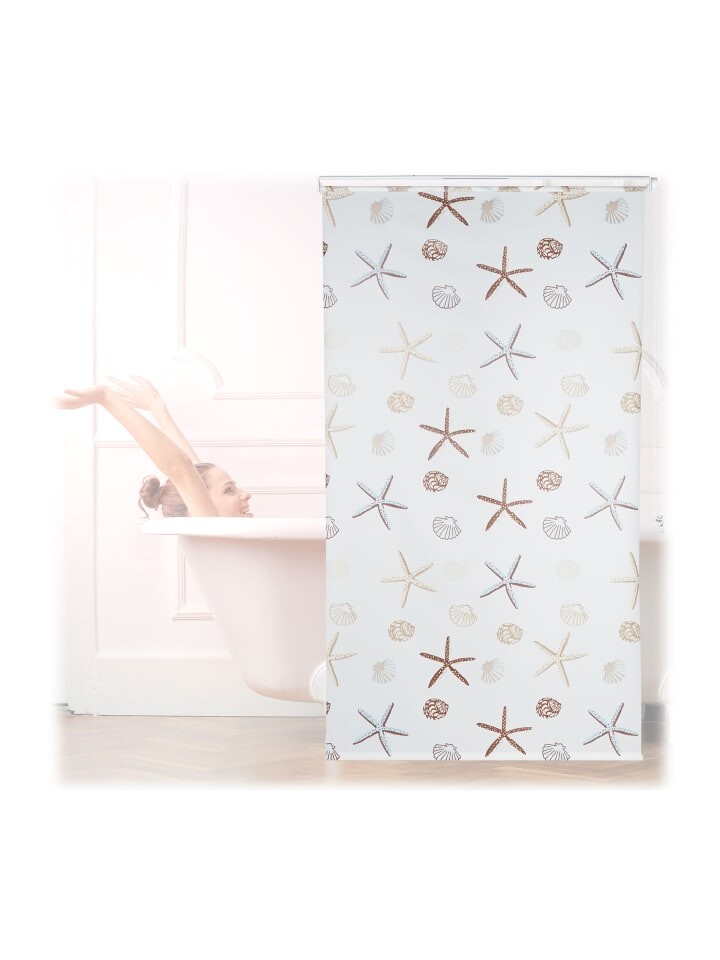 Полупрозрачная шторка для ванной с морским океанским мотивом легко крепится к потолку и является современной альтернативой традиционной занавеске для душа. Благодаря весу внизу душевая шторка прилегает прямо к душе или ванне, так что ваша плитка защищена от капель воды, и никакие раздражающие развевающиеся шторы не мешают вам во время принятия душа. Когда сухая рулонная штора не используется, просто потяните ее за трос вверх, чтобы она незаметно свернулась.