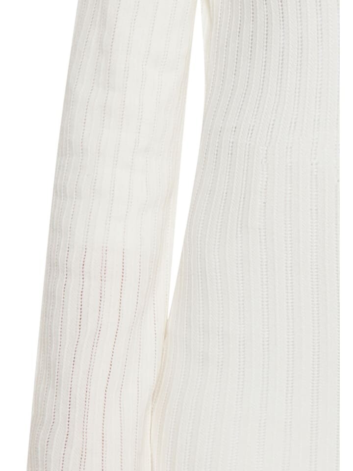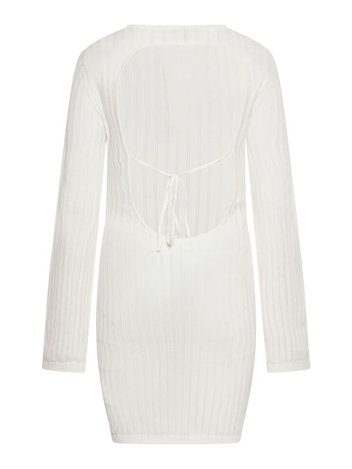 Обновите свой гардероб этим трикотажным платьем с уникальным фактурным узором. Это платье с круглым вырезом и длинными рукавами имеет приталенный силуэт, подчеркивающий ваши изгибы. Вертикальные линии, созданные узором вязки, добавляют глубины общему образу, а ребристая структура создает легкий эффект мерцания. Платье с открытой спиной и бантом сзади — предложение для всех, кто ценит этот непринужденный стиль.