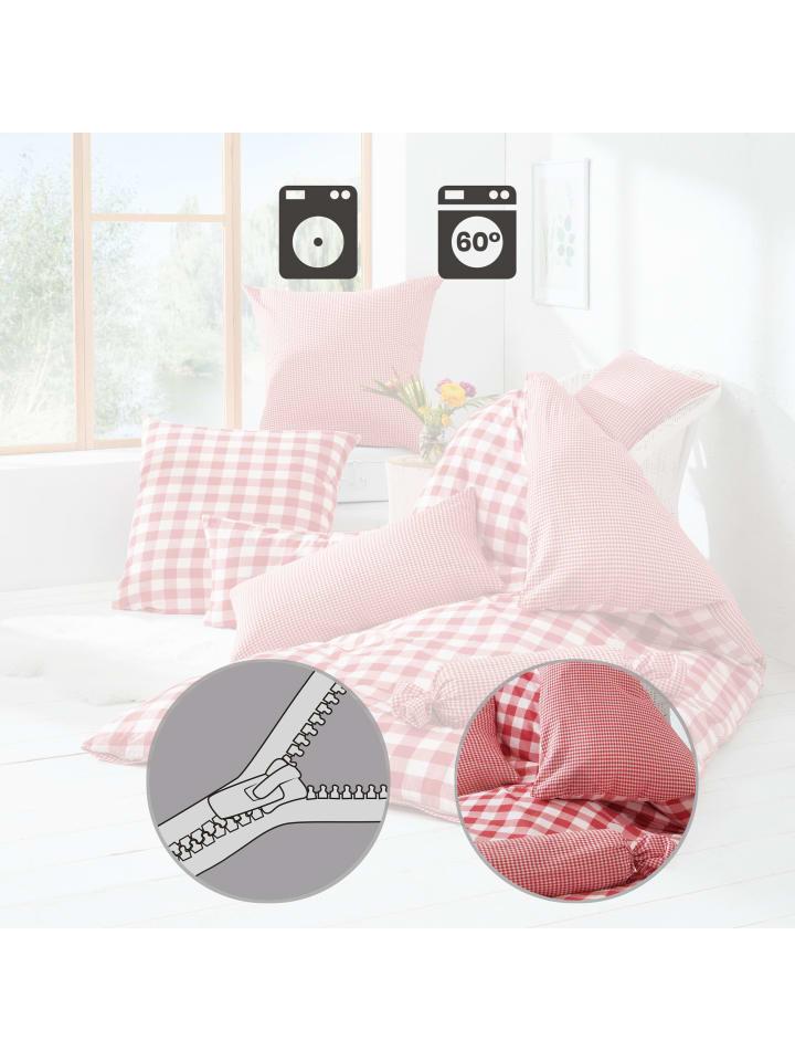 Двусторонний чехол на подушку из хлопчатобумажной ткани Erwin Müller. Для чистого комфорта. Классический узор придаст вашей спальне деревенский шарм. Крупные чеки, с одной стороны, и мелкие чеки, с другой, создают приятный контраст. Особенно летом вас впечатлит приятное легкое, приятное для кожи, термобалансирующее качество с стойким эффектом крепирования. Он прост в использовании, быстро сохнет, не гладится и может быть быстро снова надет благодаря молнии