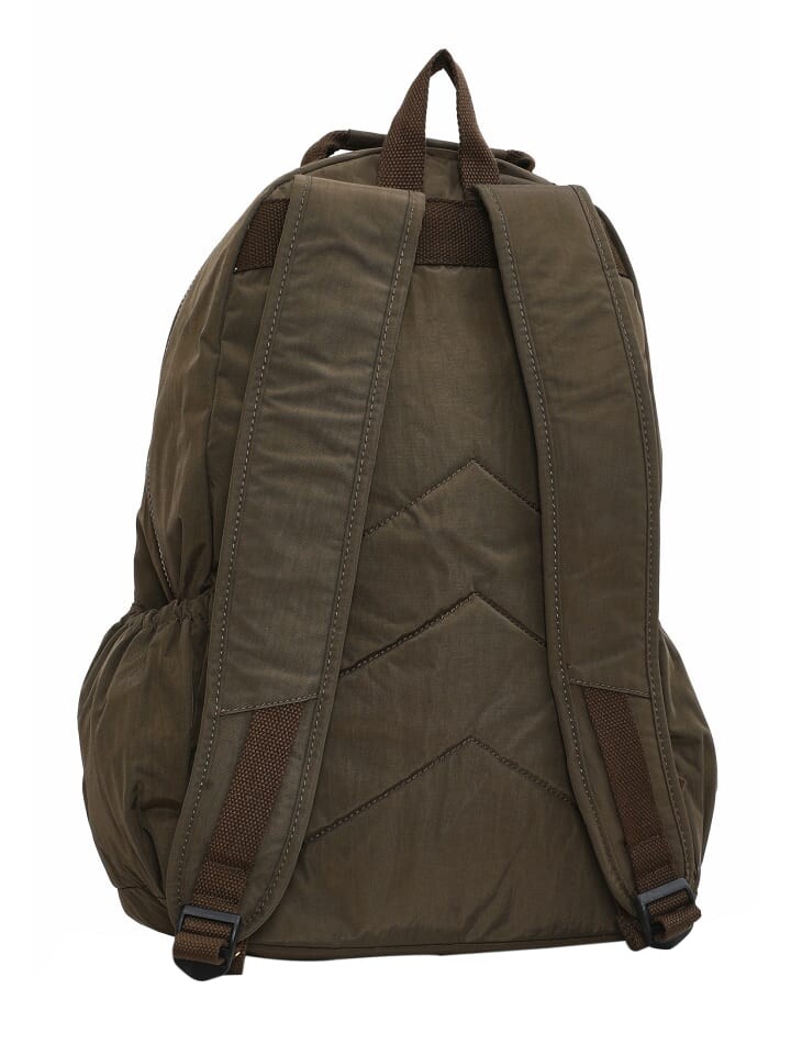 Этот рюкзак имеет структурированную конструкцию с несколькими отделениями для организованного хранения. Спереди имеется большой карман на молнии и внешнее отделение меньшего размера, оба оснащены металлическими молниями. Фирменная нашивка с логотипом над карманами придает нотку стиля. Основное отделение оснащено двойной молнией для легкого доступа, а дополнительные боковые карманы обеспечивают удобные варианты хранения вещей.