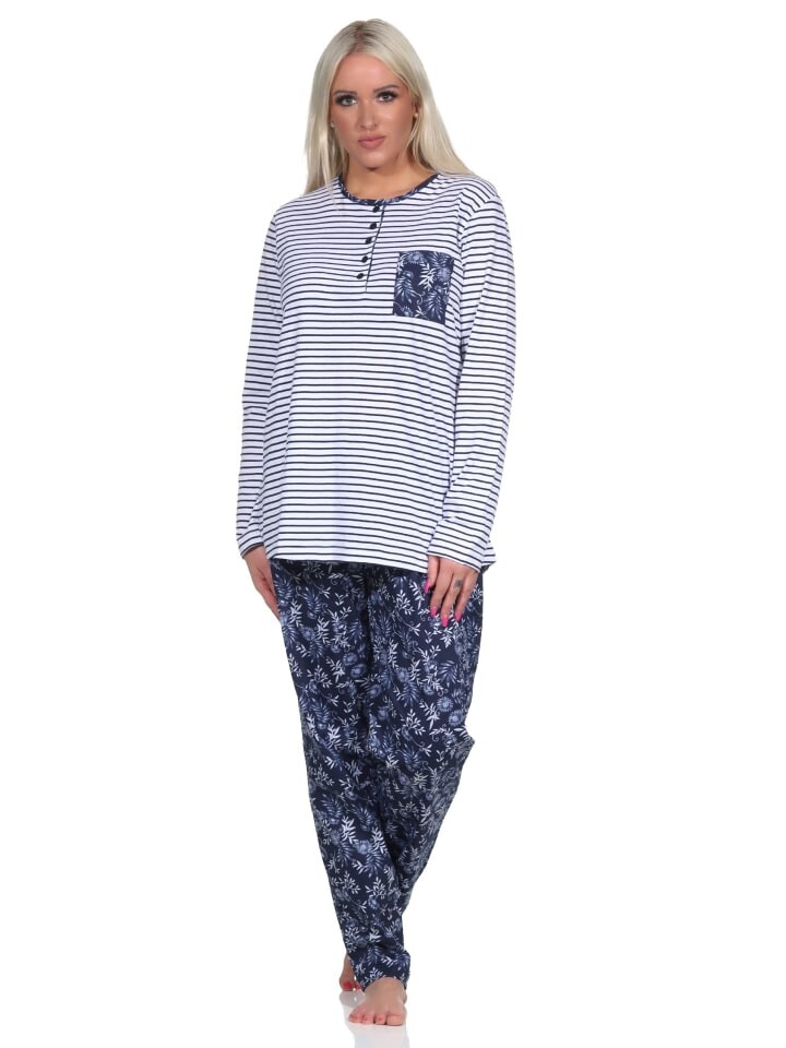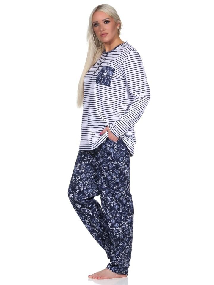Женская длинная пижама Normann, полосатый топ, брюки с цветочным узором - 122 201 90 881