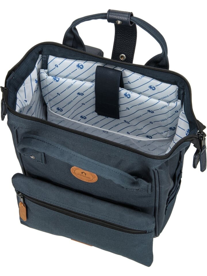 Рюкзак Cabaia изготовлен из прочного полиэстера и искусственной кожи. Благодаря сменному переднему карману вы можете настроить внешний вид рюкзака по своему желанию.