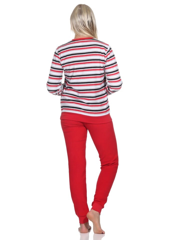 Женская пижама из махровой ткани, с длинными рукавами и манжетами - в полоску - также больших размеров