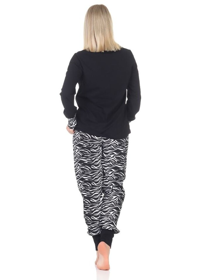 Симпатичная женская пижама с манжетами и мотивом зебры, брюки с животным принтом. Какая красивая женская пижама с длинными рукавами для всех, кто любит милых животных! Верх пижамы украшен милым животным мотивом (зеброй), а низ пижамы украшен животным принтом.