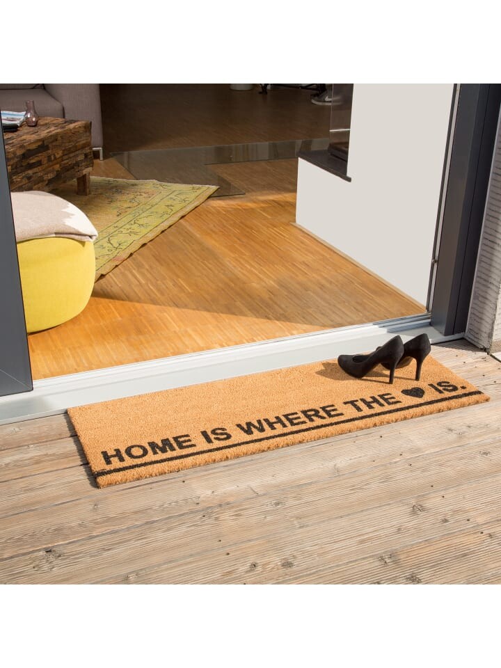 Сделайте коврик приманкой для глаз. Естественный, простой дизайн стильно дополнен словами «ДОМ ТАМ, ГДЕ СЕРДЦЕ». Это означает, что снятие обуви напрямую связано с положительным впечатлением. Придверный коврик в два раза шире стандартного размера. Это означает, что у вас будет закрыта вся передняя часть двери, особенно перед широкими входами, такими как раздвижные двери, террасы или балконы. Прямоугольная форма дает вам достаточно места для ног.