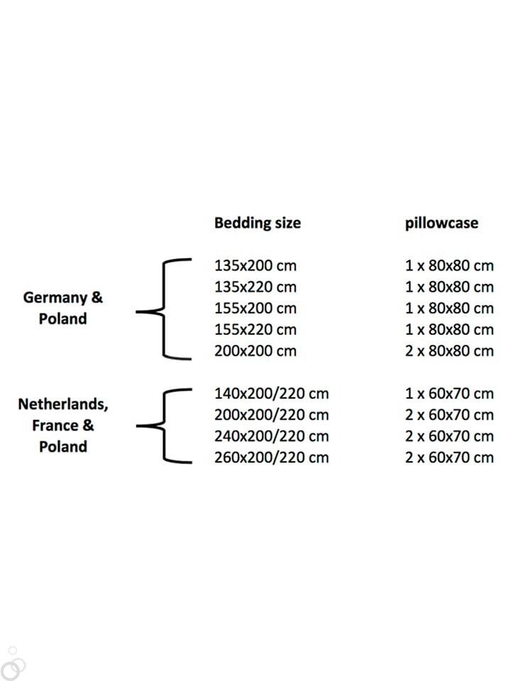 - для размеров 140 х 200/220 см, 135 х 200 см и 155 х 220 см: 1 пододеяльник и 1 наволочка